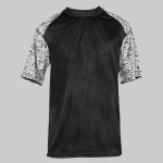 100% polyester • 3.5 oz. • moisture management/antimicrobial performance fabric • self-fabric collar • sublimated blend shoulder panels and sleeves • tonal cover-stitching • double-needle bottom hem • heat seal logo on left sleeve • Sizes: XS-4XL