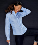 100% cotton • 4 oz. • non-iron treatment • darts on front and back for a feminine silhouette • spread collar • single button on cuffs • Sizes: S-2XL