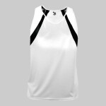 100% polyester moisture management/antimicrobial performance fabric • single needle bound neck & armhole • contrast front & back inserts • double-needle hem • heat seal logo on center back • Sizes: XS-2XL
