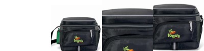 210-denier polyester • 14-can capacity • front zippered and side mesh pockets • adjustable shoulder strap • PVC-free • PEVA lining and PU fabric backing • heat-sealed interior • 4"w x 2 1/2"h front pocket center imprint area • 2" diameter max. front pocket center embroidery area • Sizes: 8"w x 8 1/2"h x 10"L