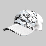 solid color double-layer 100% polyester interlock bill and back • front 2 panels and contrast sandwich in visor • digital sublimated