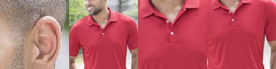 - 5-ounce, 100% poly pique with stay-cool wicking technology